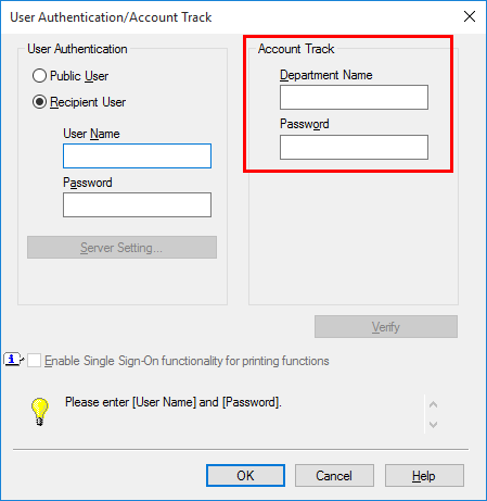 Si está activado el seguimiento de cuenta, introduzca el nombre de cuenta y la contraseña.