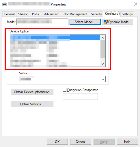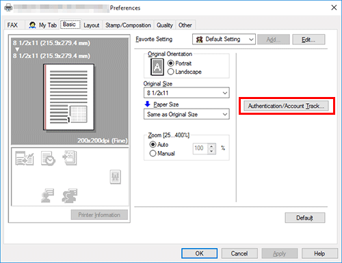 En [Opciones dispositivo] en la ficha [Configurar], compruebe que la configuración de autenticación/seguimiento de volumen esté definida correctamente para su entorno operativo.