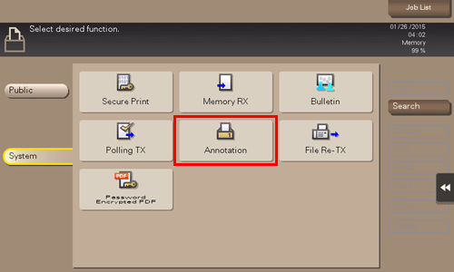 Seleccione [Utilidad] - [Administrador] - [Carpeta] - [Lista de carpetas de usuario del sistema].