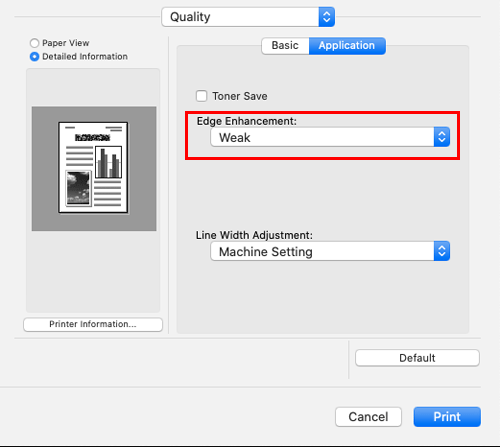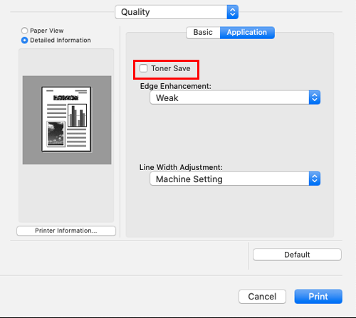 Al seleccionar la casilla de verificación [Toner Save] en [Quality], se ajusta la densidad de impresión para reducir el consumo de tóner.