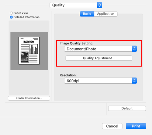 En [Image Quality Setting:] de [Quality], seleccione el modo de ajuste de imagen que se adapte al original.