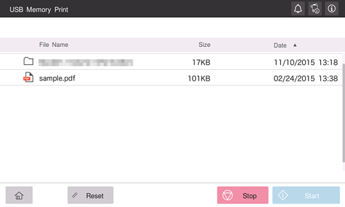 Toque [Mem. USB Impresión] en la pantalla de inicio.