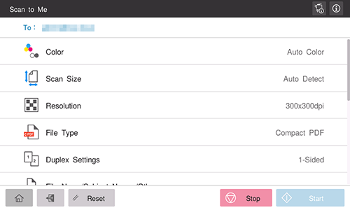Si selecciona [Scan to Me] en Inicio, puede enviarse un correo electrónico únicamente a usted fácilmente.