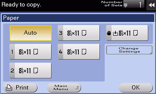 [Auto] | Automatically selects paper fitting the size of the original when making a copy. |