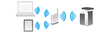 You can directly connect a terminal that is compatible with a wireless LAN to this machine by operating this machine as a Wi-Fi Direct group owner. This allows you to configure a wireless LAN environment that is separate from the wired LAN environment.