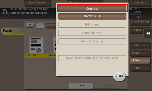 When printing multiple files at the same time, you can combine those files and handle them as a single job. This is called the Combine printing.