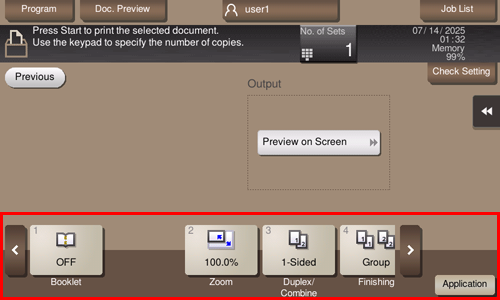 If an output image cannot be displayed, [Preview on Screen] is displayed. To check an output image, tap [Preview on Screen], and confirm the target output image on the preview screen.