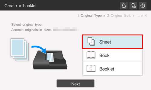 The [Create a booklet] position varies depending on the customization status of the home screen. By default, access from [Useful Apps] on the home screen. For details on [Useful Apps], refer to Accessing all the function keys.