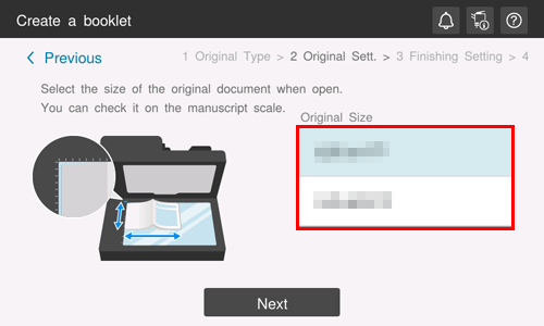 Some finishing sizes cannot be selected depending on the size of the loaded original.