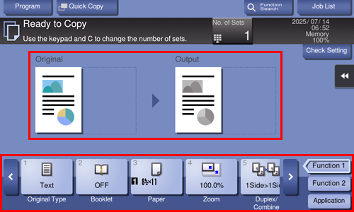 If desired, tap [Check Setting] before starting a copy, and check the setting.
