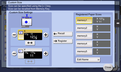 Enter the paper size in [Custom Size Settings], and close the screen.