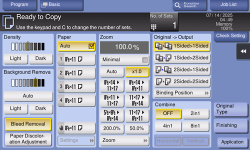 To set the finishing program, select [Utility] - [Utility] - [Copier Settings] - [Finishing program].
