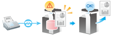 When the machine cannot print a received fax due to paper jam or exhaustion of consumables, the received fax is stored in the memory until this machine is ready to print.