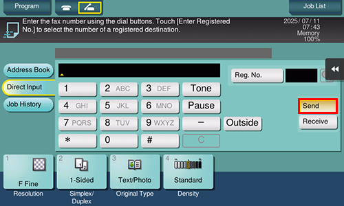 Check that [Send] is selected and specify a fax number.