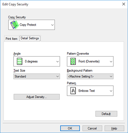 [Adjust Density] | Adjust the density of the copy security pattern. |