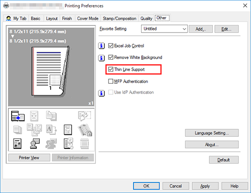 In the [Other] tab, select the [Thin Line Support] check box.
