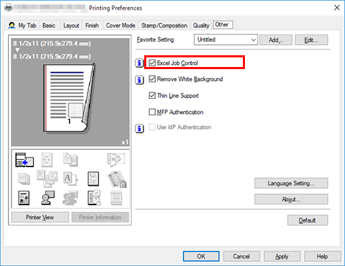 In the [Other] tab, select the [Excel Job Control] check box.