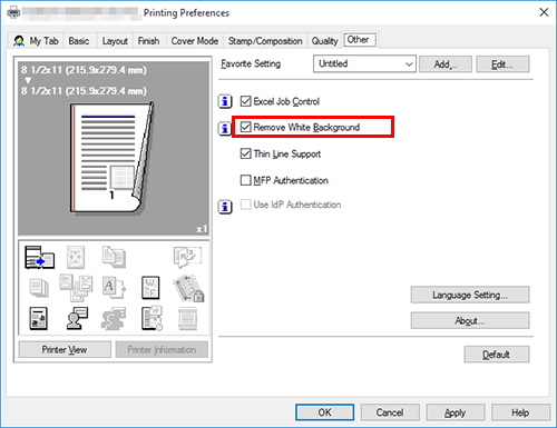 In the [Other] tab, select the [Remove White Background] check box.