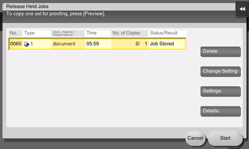 Only one copy is printed. Then, proceed to "Printing a Proof Print job on this machine".