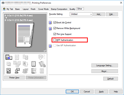 If you always use the same account name and password, registering them in advance eliminates the need to enter them each time. For details, refer to Changing the default print settings.