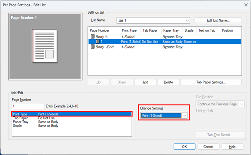 Select [Print Type], and also select [Print (1-Sided)] from [Change Settings].