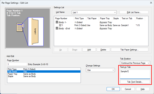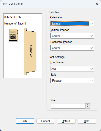 Enter the text you want to print in [Text on Tab], and click [Tab Text Details...].