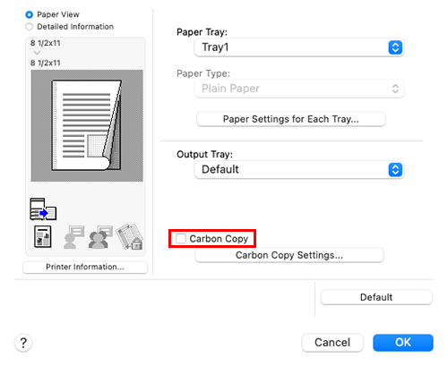 [Carbon Copy Tray] | Select the paper tray for carbon copies. Select the check boxes for all paper trays to be used. |