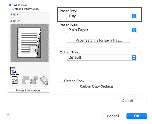 [Paper Tray] | Select the paper tray for printing the specified pages. | |