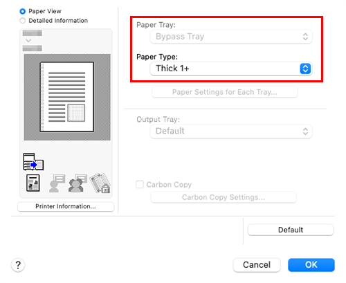 If the specified paper size is not in the allowable range of the banner size, [Paper Tray] or [Paper Type] is not grayed out to enable you to change them. In this case, check the setting of the custom paper size.