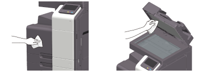 - The inside of this product has areas subject to high temperature, which may cause burns. When checking the inside of the unit for malfunctions such as a paper misfeed, do not touch the locations (around the fusing unit, etc.) which are indicated by a "Caution HOT" caution label. A burn could result.