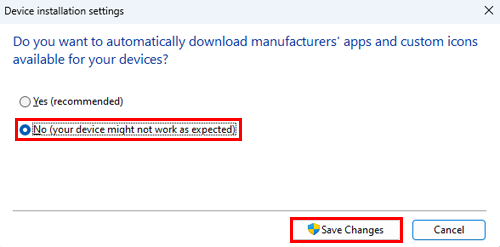 When you have finished installing the fax driver, change the setting back to [Yes (recommended)].