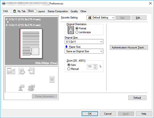If you are using this machine for the first time, ensure that optional device installation and authentication settings have been correctly reflected on the fax driver.