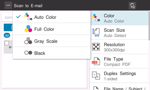 [Auto Color] | Automatically determines [Full Color] or [Gray Scale] to fit the original color when scanning the original. |