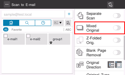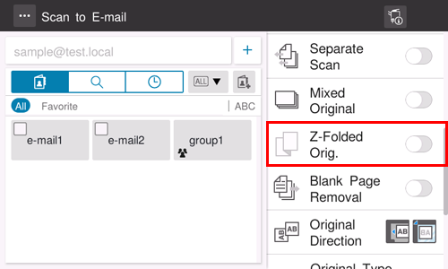 If a folded original is loaded into the ADF, the original size may not be able be detected accurately. To scan the folded original on the ADF, set this option to ON.