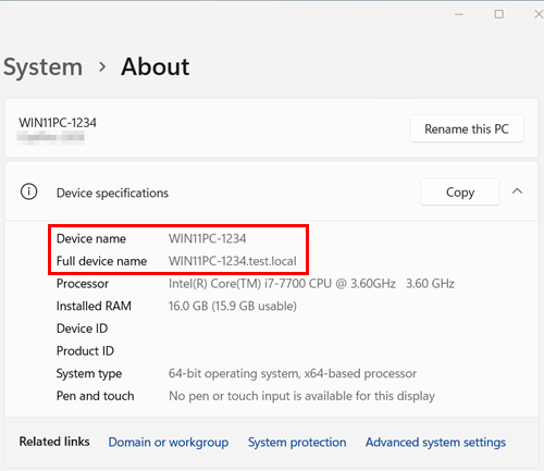 [Device name] is used as the computer name.