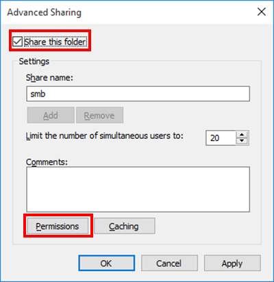 First, create a shared folder that is only to be used to receive scanned original data. Then, check the IP address and user name, and start sharing.