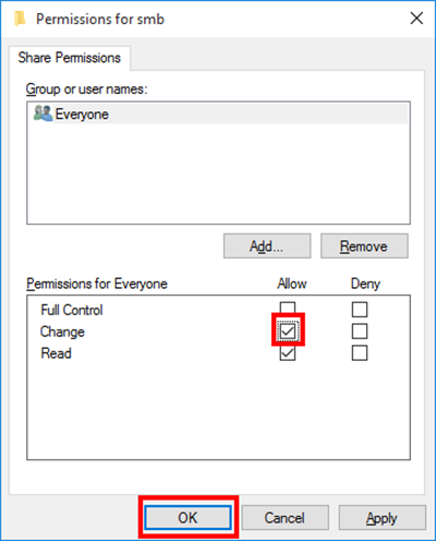Check that the user name you wrote down in a previous step is displayed and the access rights are set to [Read & Write].