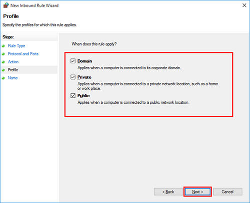 Select the check boxes for the profiles that match the environment for using this machine, and click [Next].