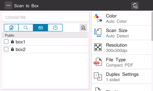 If [Search Box No.] is selected in step 1, enter the User Box No. you want to search for.