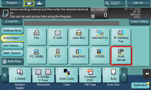 A scan process is used to automate a preset scanning workflow such as a distribution destination from a scan server. This is created by the Windows Server application, and registered in Active Directory.