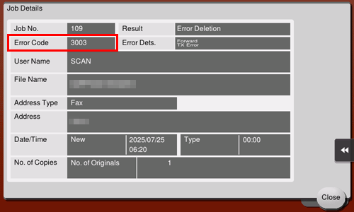 The error code can also be checked on the [Job Details] screen. To display the [Job Details] screen, tap [Job List], select the job that caused the error from [Log], and tap [Details..].