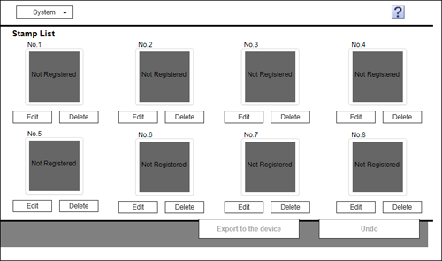 Clicking [Delete] deletes the registered stamp data. The stamp data will not be deleted until you click [Export to the device] and write it to this machine.