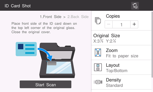 Para copiar varias tarjetas, como por ejemplo una tarjeta de seguro de salud y un permiso de conducir, use el modo de copia de tarjeta ID. Con una sencilla operación, puede copiar las caras delantera y trasera de una tarjeta, una al lado de la otra, en la misma cara de una hoja de papel.