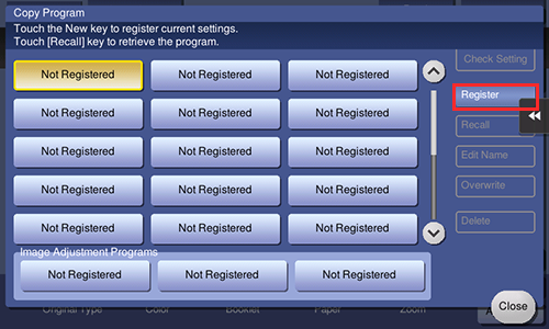 Hay dos tipos de programas de copia: el programa normal para registrar los ajustes de copia y el programas de ajuste de imagen para registrar solo los ajustes de imagen.