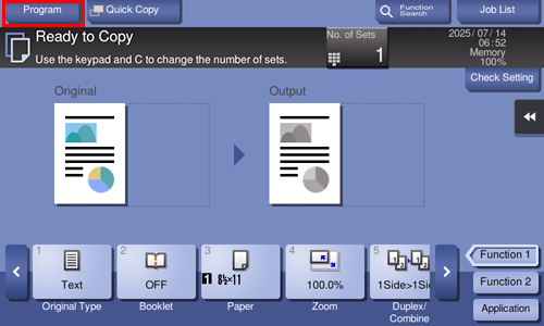 El programa es una función que se emplea para registrar una combinación de diferentes ajustes de copia en una tecla de recuperación. El programa que se registrará en el modo de copia se denomina programa de copia.