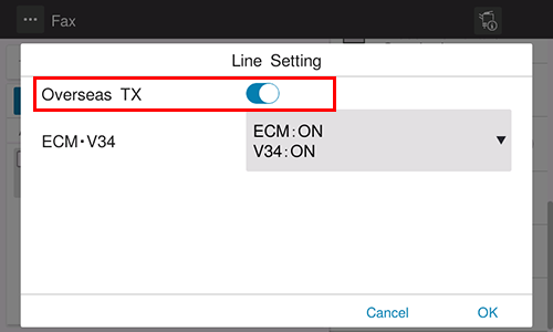 Fax > Opciones de envío > Envío de faxes al extranjero ([Transmisión al extranjero])
