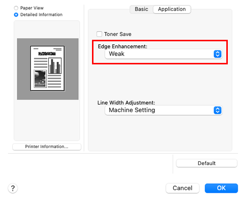 Al seleccionar la casilla de verificación [Ahorro de tóner] en [Calidad] - [Aplicación], se ajusta la densidad de impresión para reducir el consumo de tóner.