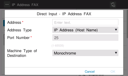 Ajustes de [Entrada directa - Fax por IP]