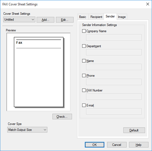 Se abre la pantalla [Configuración de la portada del fax].