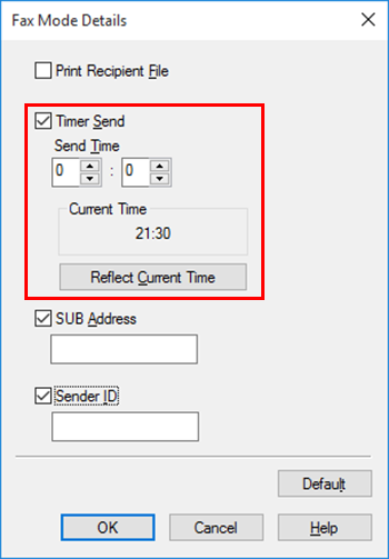 PC-FAX > Opciones de envío > Envío de un fax en un tiempo preestablecido (Temporizador de transmisión)